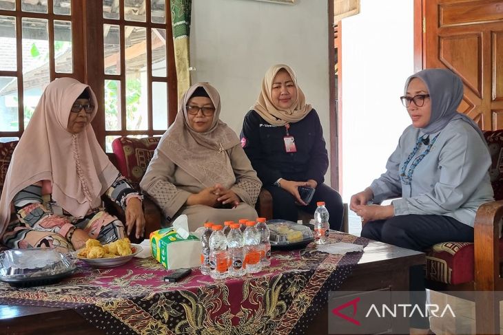 Menteri Pemberdayaan Perempuan dan Perlindungan Anak Arifah Fauzi (kanan) berbincang dengan kakak Marsinah, Marsini (kedua kiri) dan tante Marsinah, Sini (kiri) di rumah keluarga Marsinah, Nganjuk, Jawa Timur, Minggu (19/10/2025). ANTARA/Anita Permata Dewi/aa.