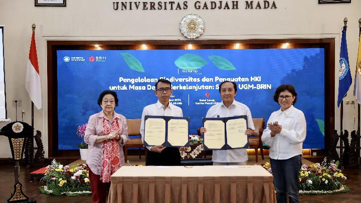 Sebelum workshop di lantai 2 Balairung UGM, Megawati yang juga Ketua Dewan Pemgarah BRIN, antusias menyimak Mini Expo Biodiversitas yang menampilkan hasil riset dan hilirisasi berbasis keanekaragaman hayati. BRIN menampilkan sejumlah skema pengelolaan kekayaan intelektual berupa produk pangan hasil teknologi terapan bersama mitra UMKM. UGM Science Techno Park memamerkan riset bahan pewarna alami, sementara Fakultas Biologi UGM memperlihatkan inovasi hasil riset terkini.